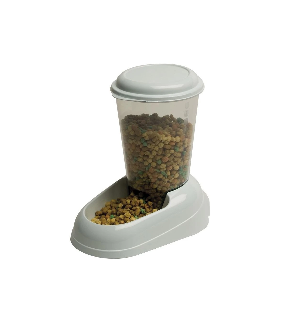Grazie al distributore di cibo per cani e gatti Zenith, il vostro fedele amico potrà gustare in qualsiasi momento le sue crocchette preferite. Realizzato totalmente in plastica, Zenith ha un serbatoio trasparente che permette di tenere sempre sotto controllo il livello di cibo contenuto al suo interno. Zenith è ideale sia per gatti sia per cani di piccola e media taglia, contiene fino a 3 litri di cibo secco ed è dotato di pratica impugnatura e di tappi in gomma antiscivolo,