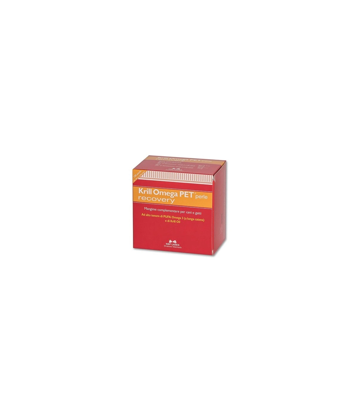 Krill Omega Pet perle recovery con 120 perle in blister, rende più facile e conveniente il trattamento completo in corso di malattie infiammatorie e/o degenerative ad andamento cronico, specialmente quando è consigliabile l’uso del preparato a vita o a cicli.